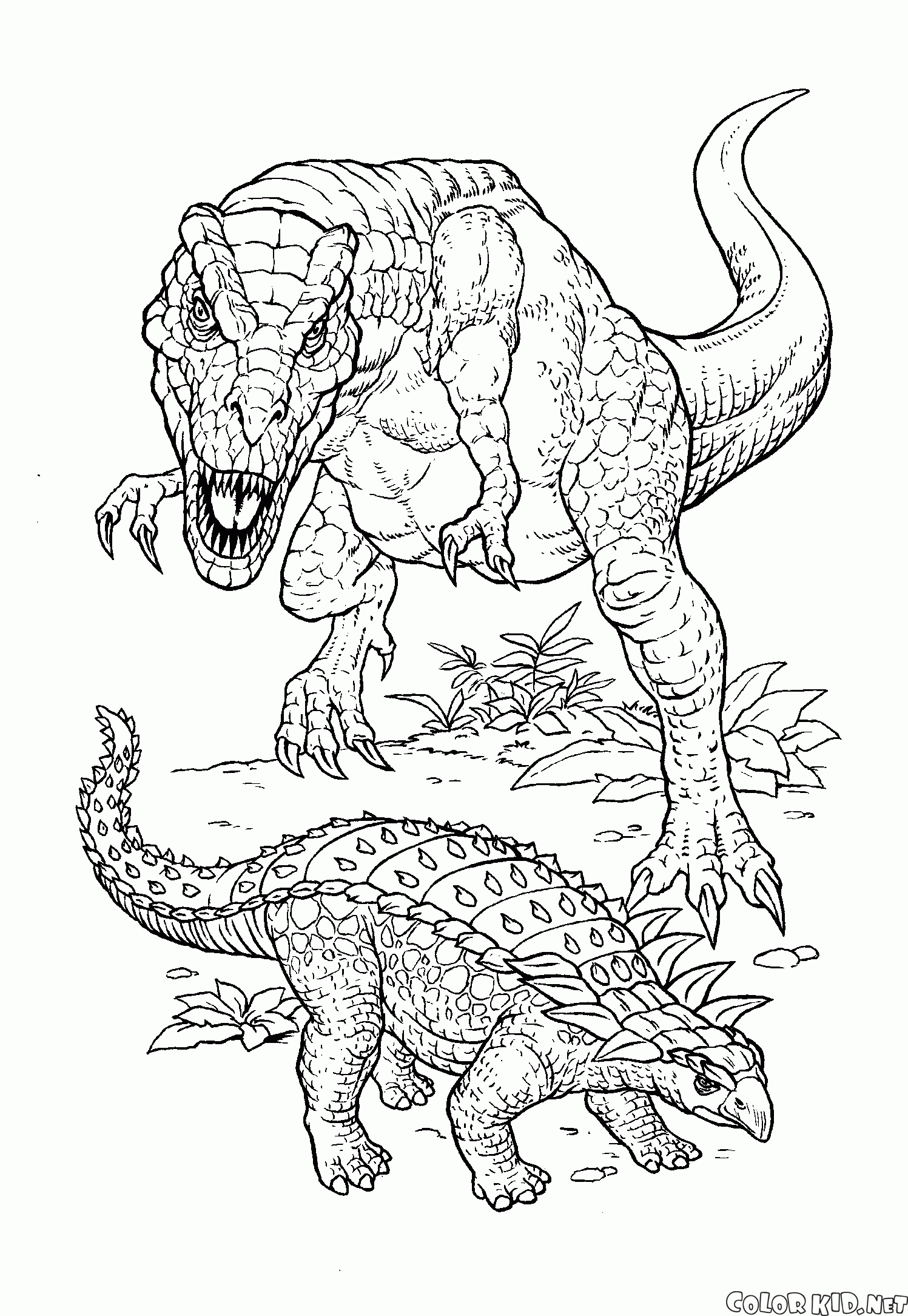 Możesz pobrać i wydrukować z naszej strony kolorowanki dla dzieci Polowanie Tyrannosaurus.