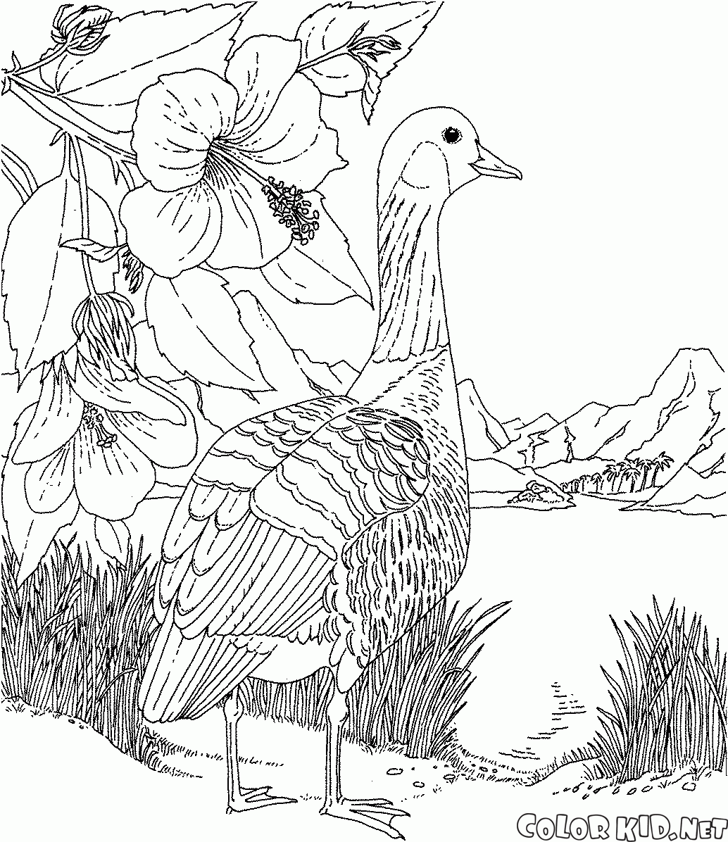 Kolorowanka - Gęś w jeziorze