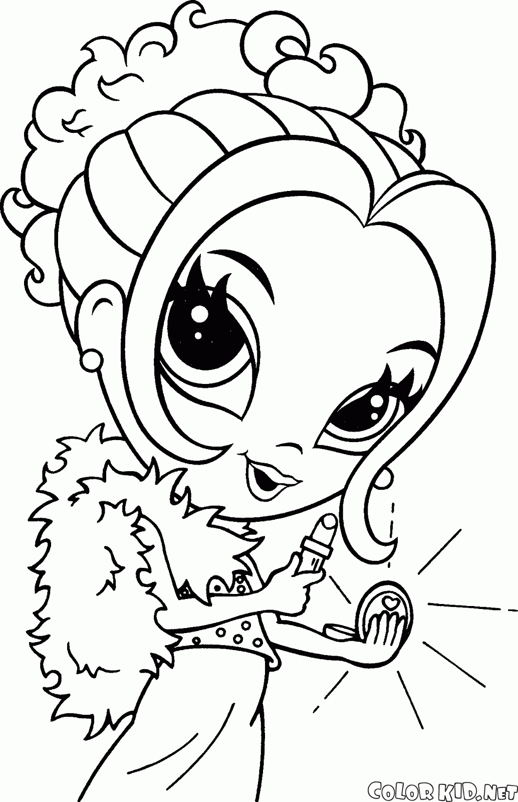 Możesz pobrać i wydrukować z naszej strony kolorowanki dla dzieci Dziewczyna poprawia makijaż.