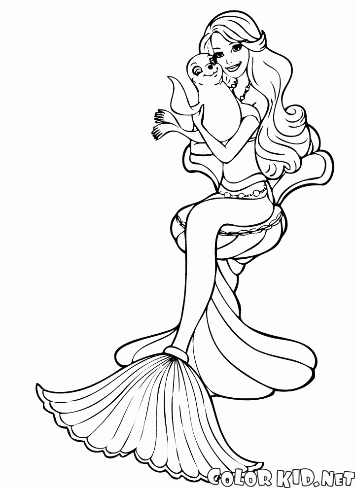 Kolorowanka - Syrenka i morsa