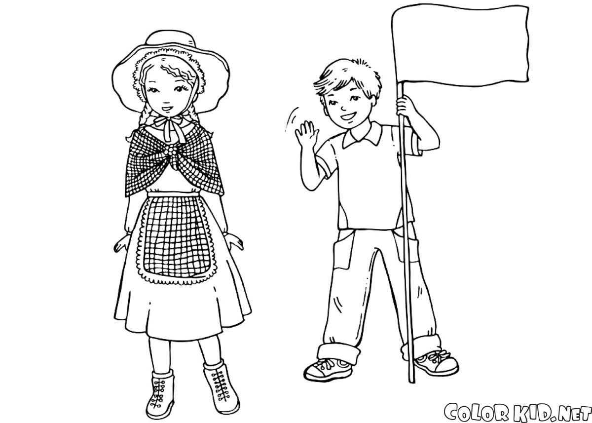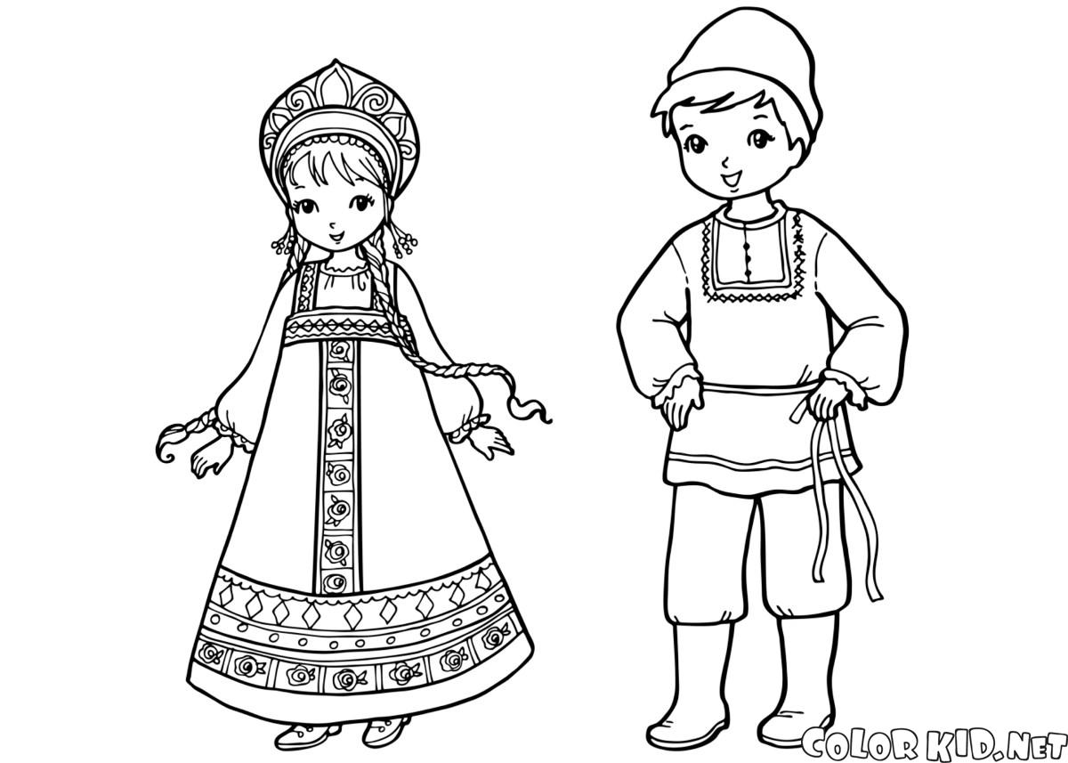 Kolorowanki - Dzieci w tradycyjnych strojach
