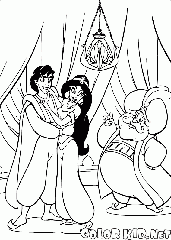 Możesz pobrać i wydrukować z naszej strony kolorowanki dla dzieci Jasmine, Aladyn i Sultan.
