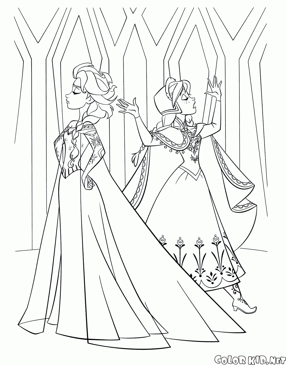 Kolorowanka - Elsa i Anna w zamku