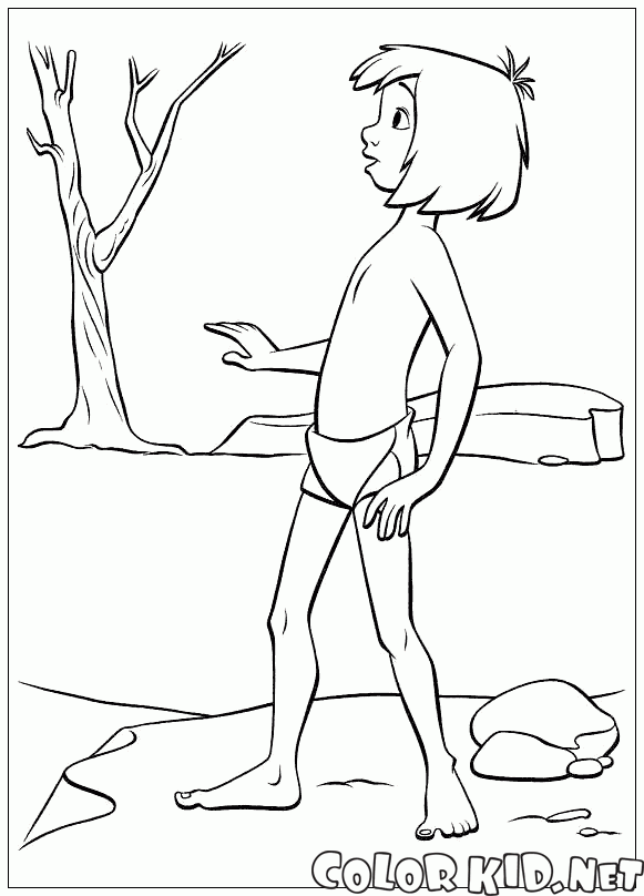 Kolorowanka - Mowgli bada dżungli