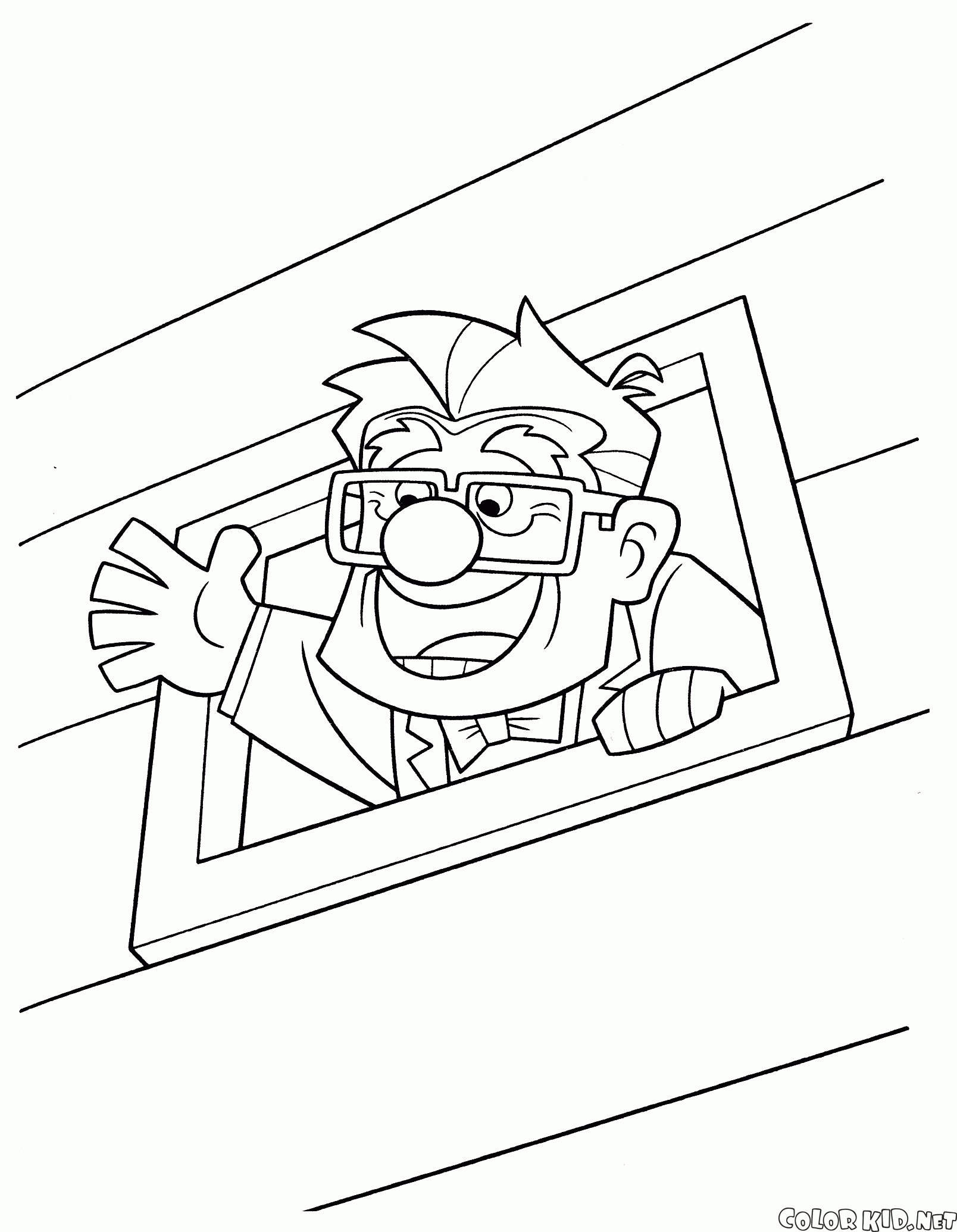 Możesz pobrać i wydrukować z naszej strony kolorowanki dla dzieci Carl zadowolony.