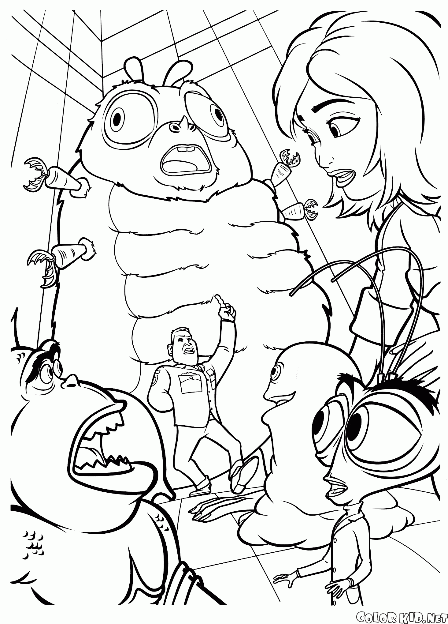 W Filmy animowane znajdziesz między innymi kolorowanki Potwory kontra Obcy.