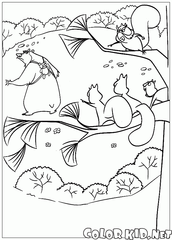 Kolorowanka - Wiewiórki i Niedźwiedź