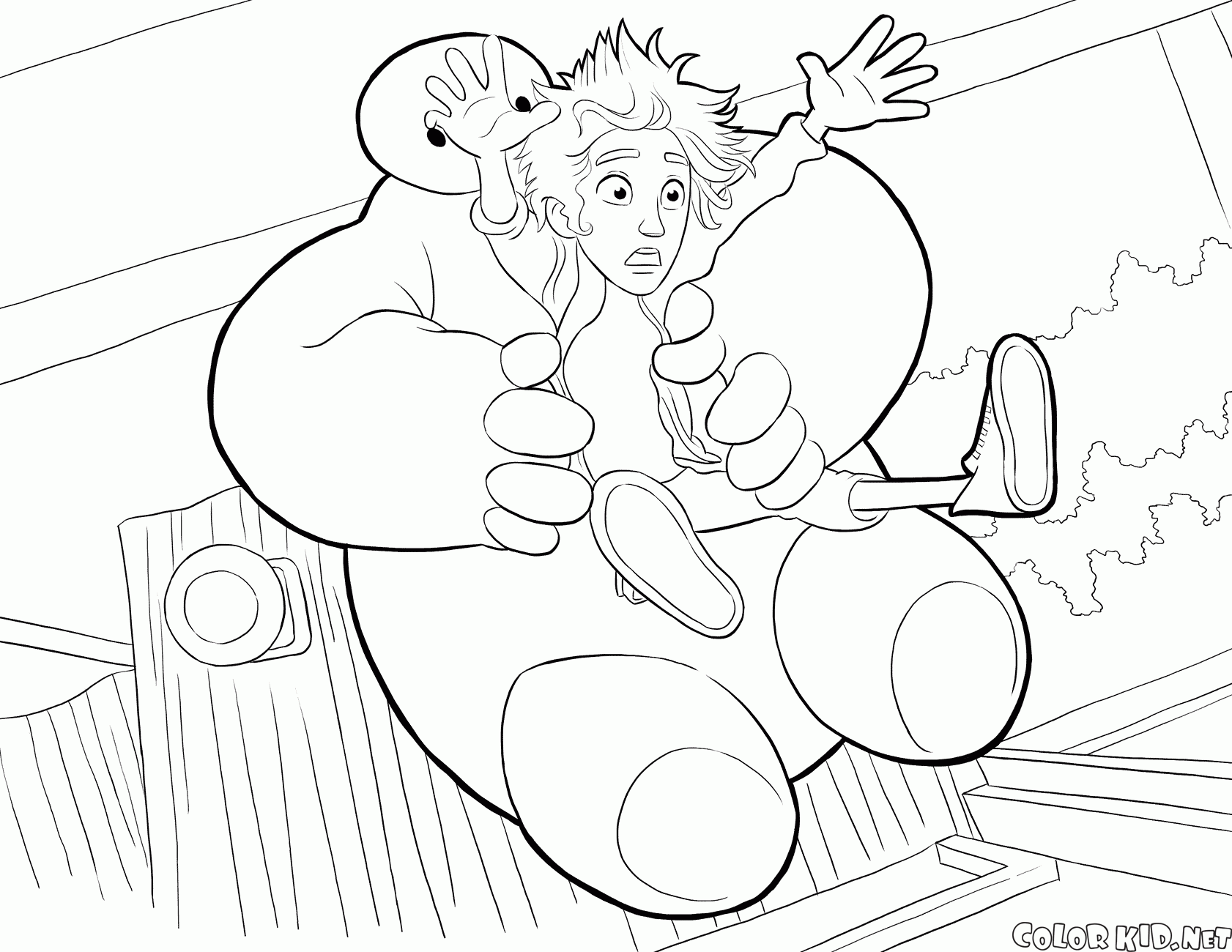 Kolorowanka - Baymax i Hiro latania w dół