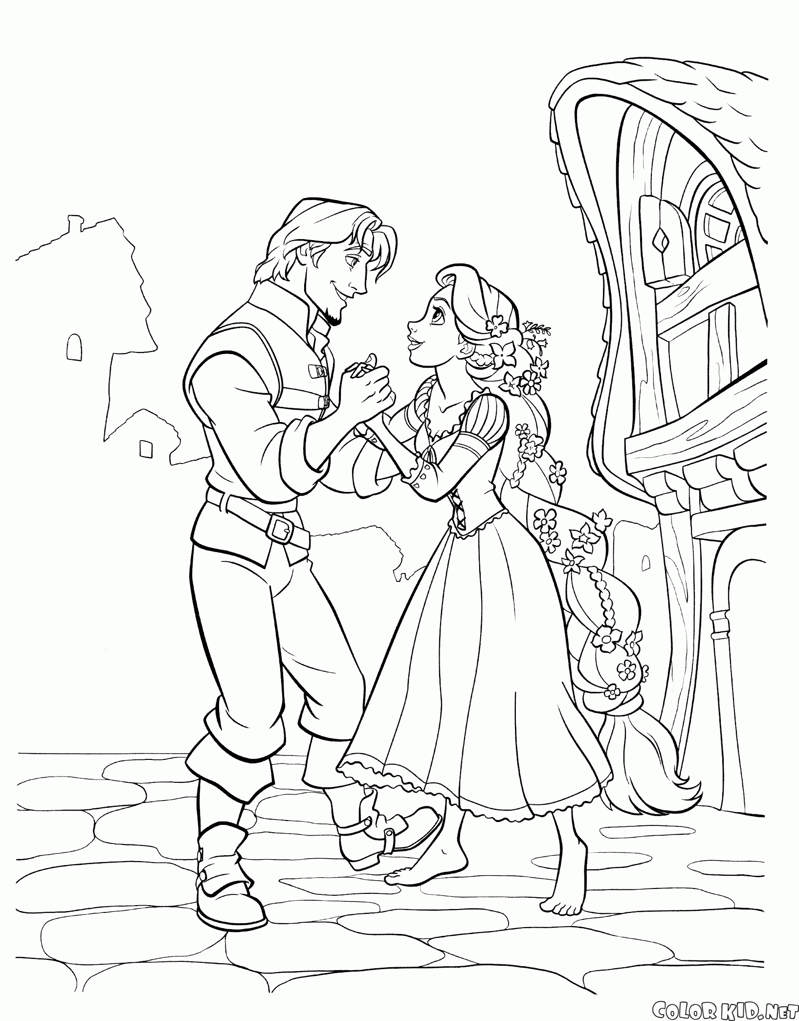 Kolorowanka - Spotkanie Flynn i Roszpunka