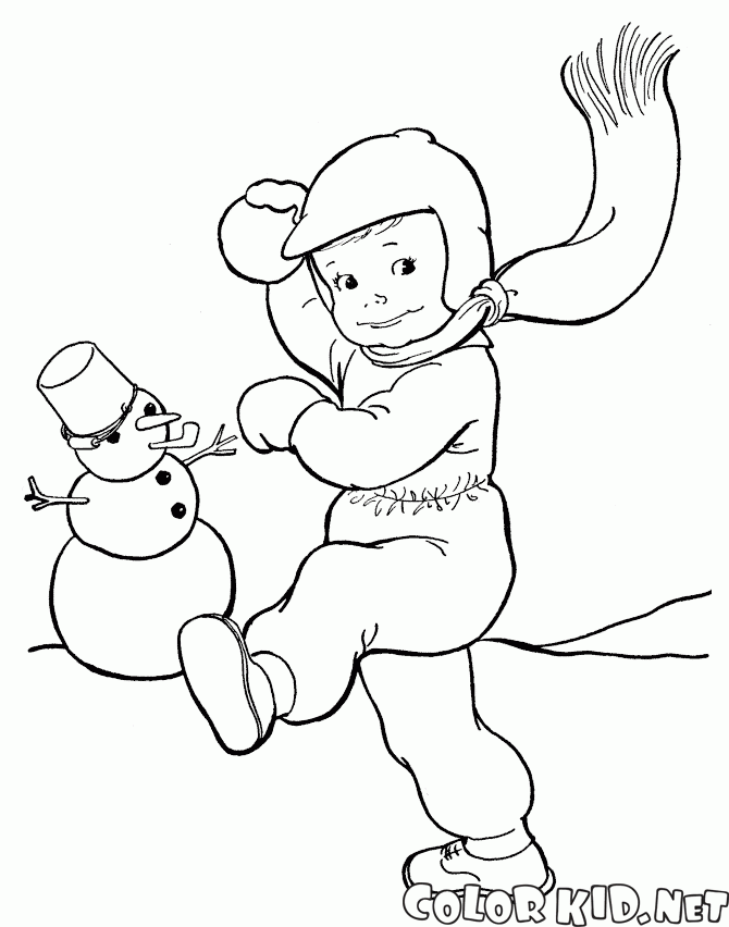 Chłopiec rzeźbi bałwana