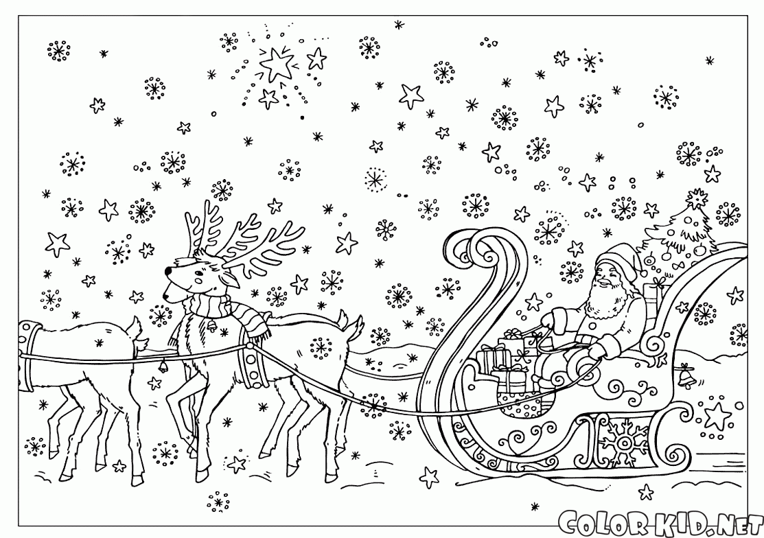 Kolorowanka - Święty Mikołaj w saniach