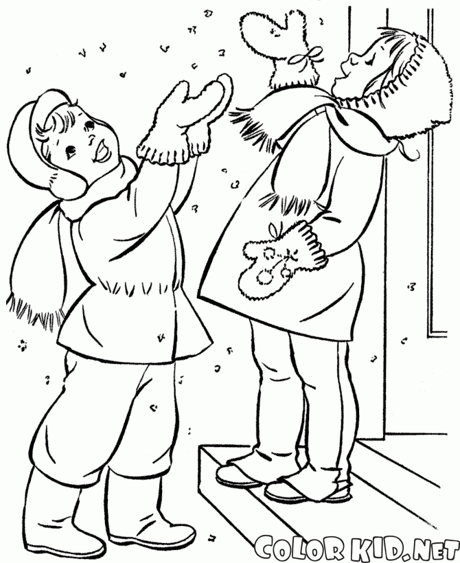 Kolorowanka - Dzieci połowu śniegu